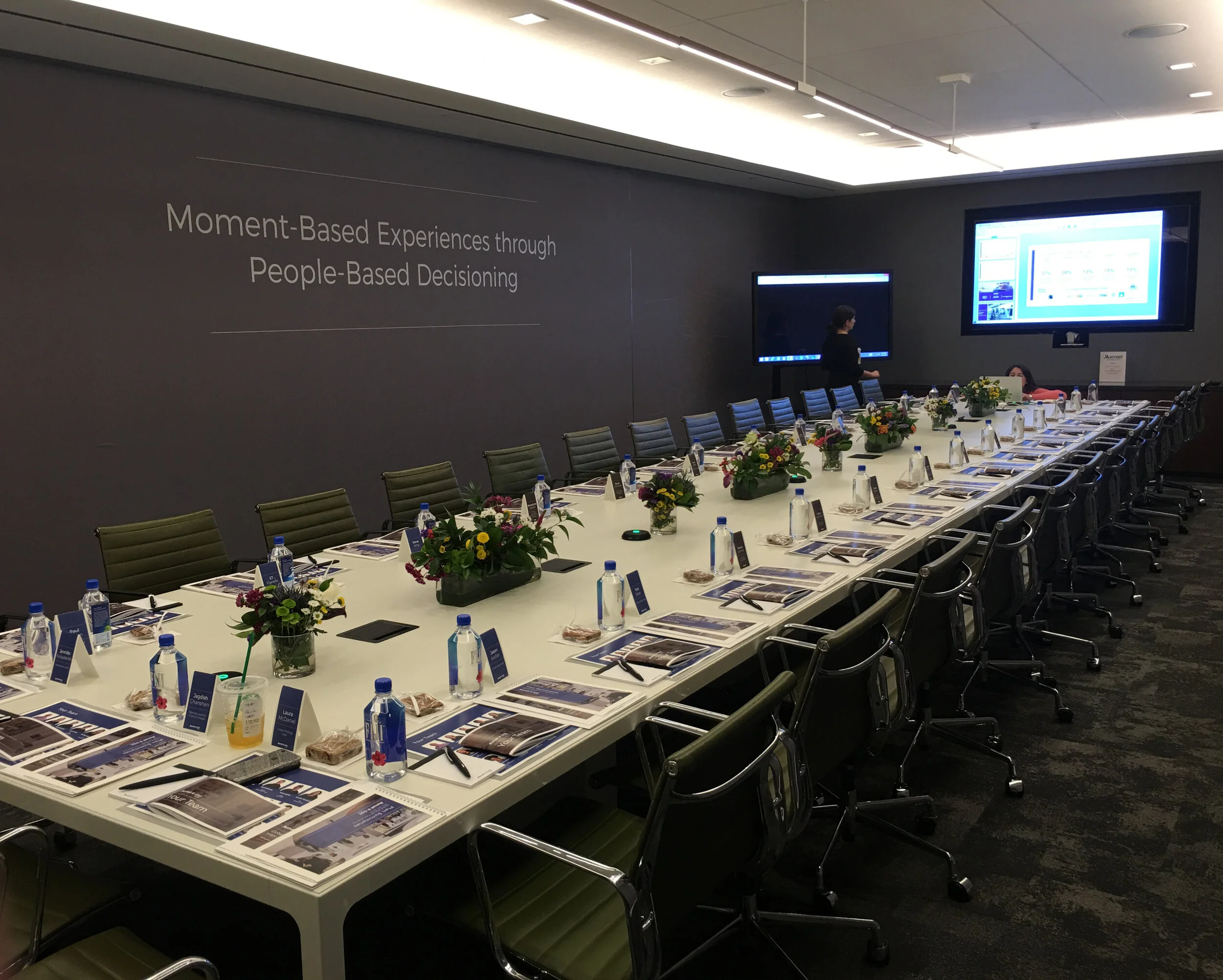 Within these meetings there were many different types of assets that were designed conceptually to bring together a 360 experience for the clients. These assets ranged from Presentation design, tons printed collateral, wall decals, flowers on the table, specific foods for the client, and a give away.